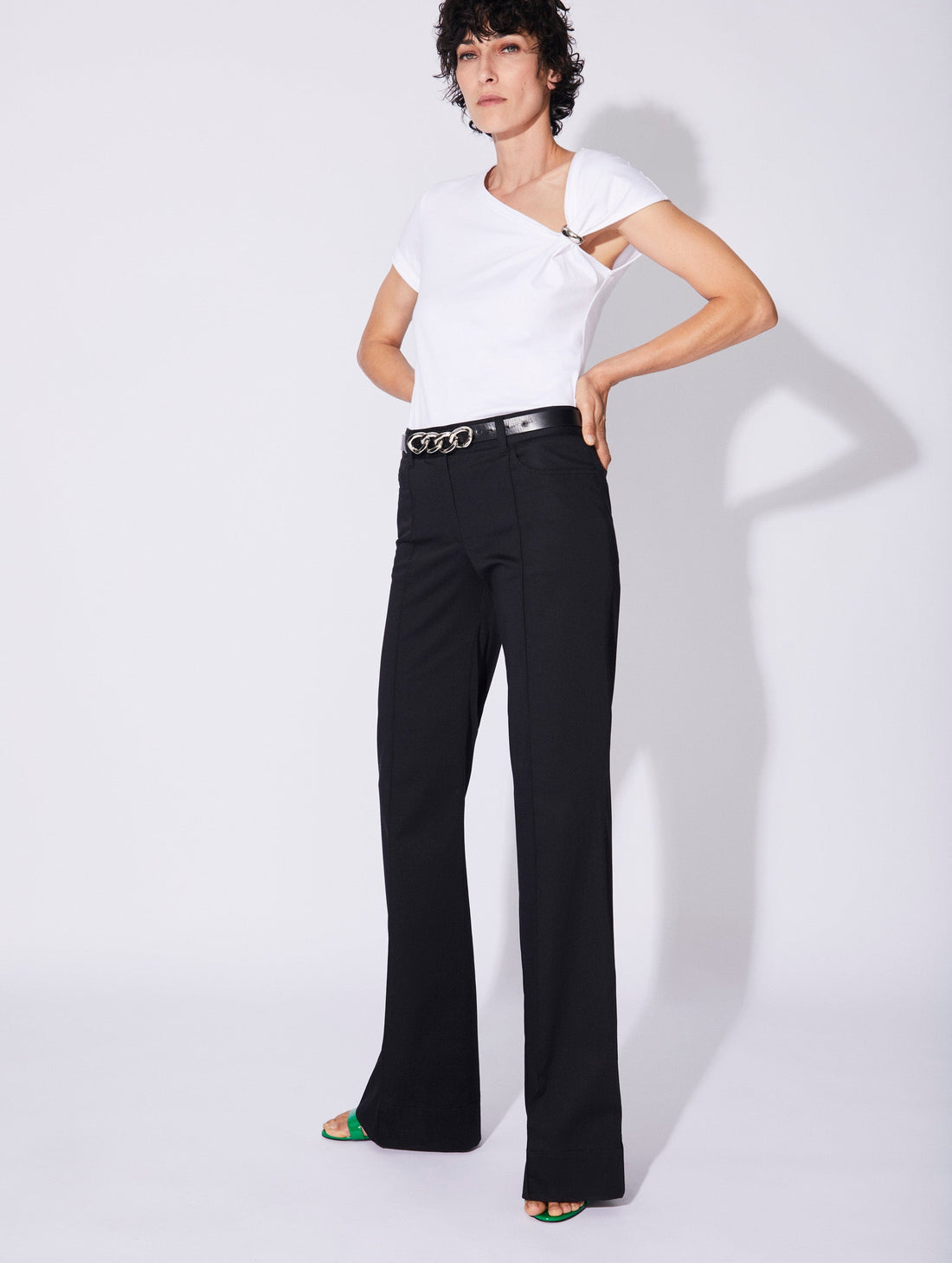 - asymmetrical style drapped with detachable ring