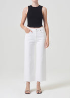 The Harper is a relaxed mid-rise with a flattering square top block and a straight yet subtle cropped wide leg.
