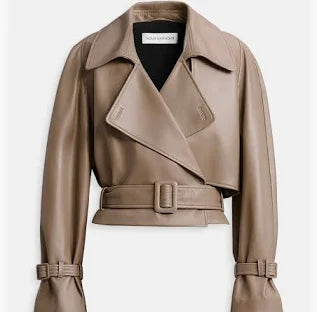 A gently oversized shape fashioned in supple leather, buttery to the touch. The soft, draped look is belted at the waist for a flattering, cropped finish.