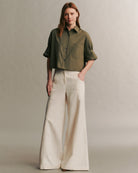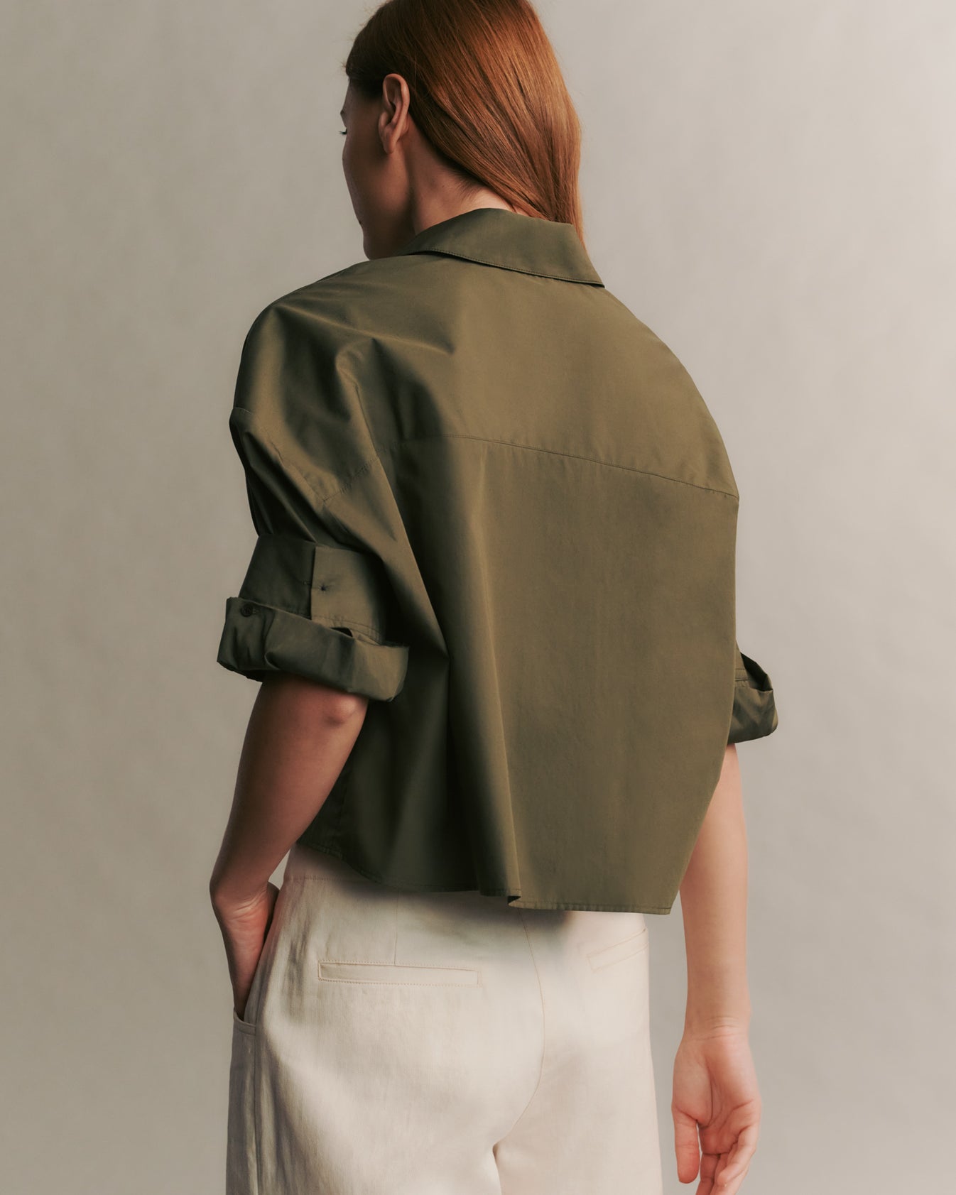 TWP’s signature short sleeved button down crafted in superfine Italian cotton shirting. The Next Ex is a cropped, boxy silhouette, complete with a chest patch pocket, button up placket, spread collar, and our signature double roll button cuffs.