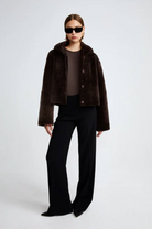 Uncompromising chic blended with enveloping coziness. Unlined lambskin shearling gives a soft draped shape, abbreviated to a cropped waist length. Finished with a plush hood, zip closure, and two pockets