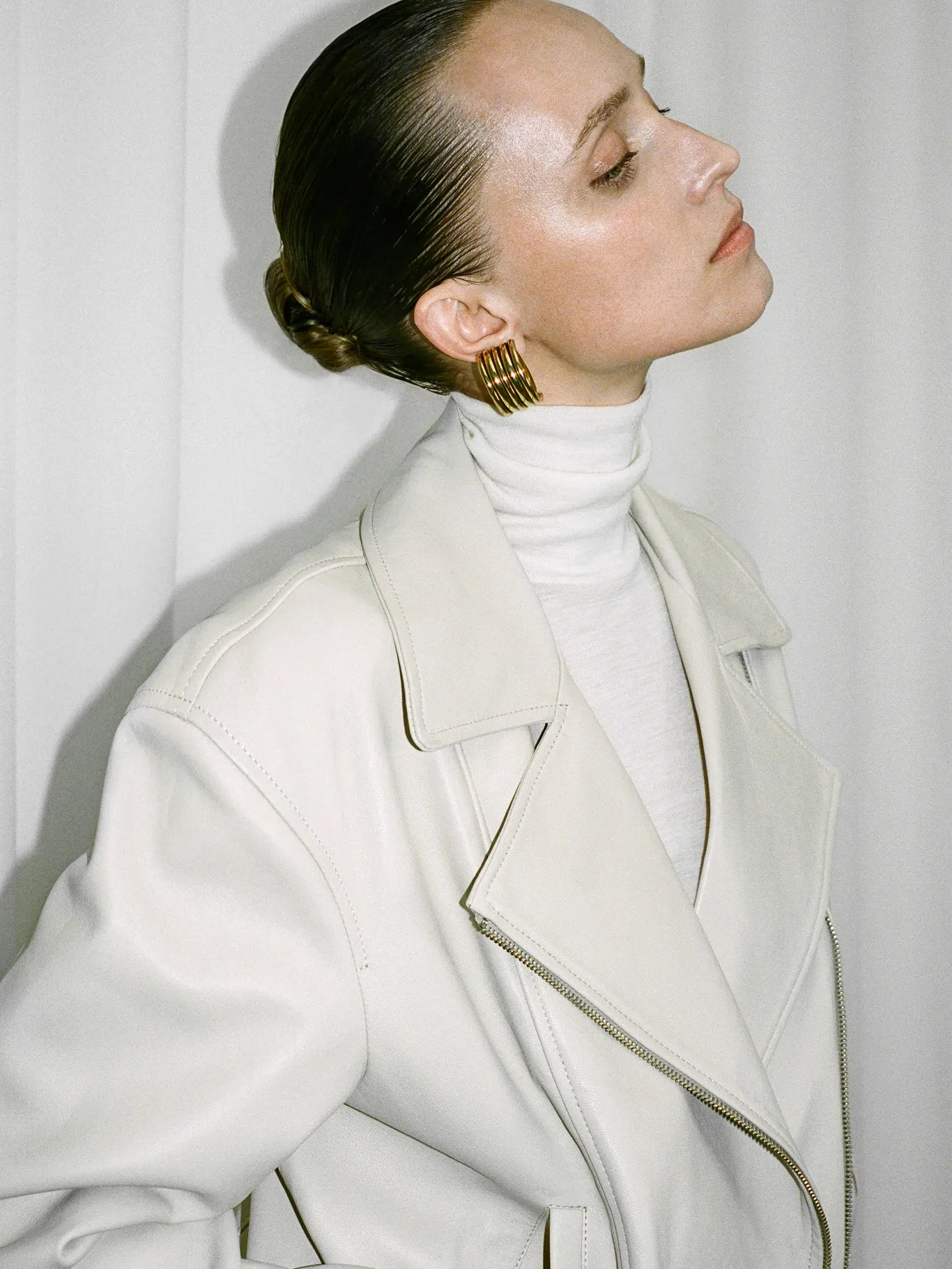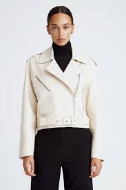 The perfect motorcycle jacket. the Trapp jacket has a "timeless" biker silhouette, with oversized collar lapels, silver hardware, and a belted fastening waist. The leather has a patina finish, adding a modern and luxurious touch to the edgy moto look.