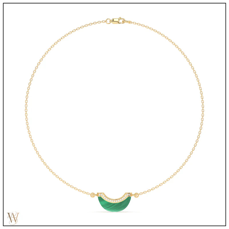 Mini Luna Necklace Malachite with Pave Details