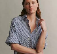 Signature short sleeved button down crafted in striped Italian cotton. The Next Ex is a cropped, boxy silhouette, complete with a chest patch pocket, button up placket, spread collar, and our signature double roll button cuffs.