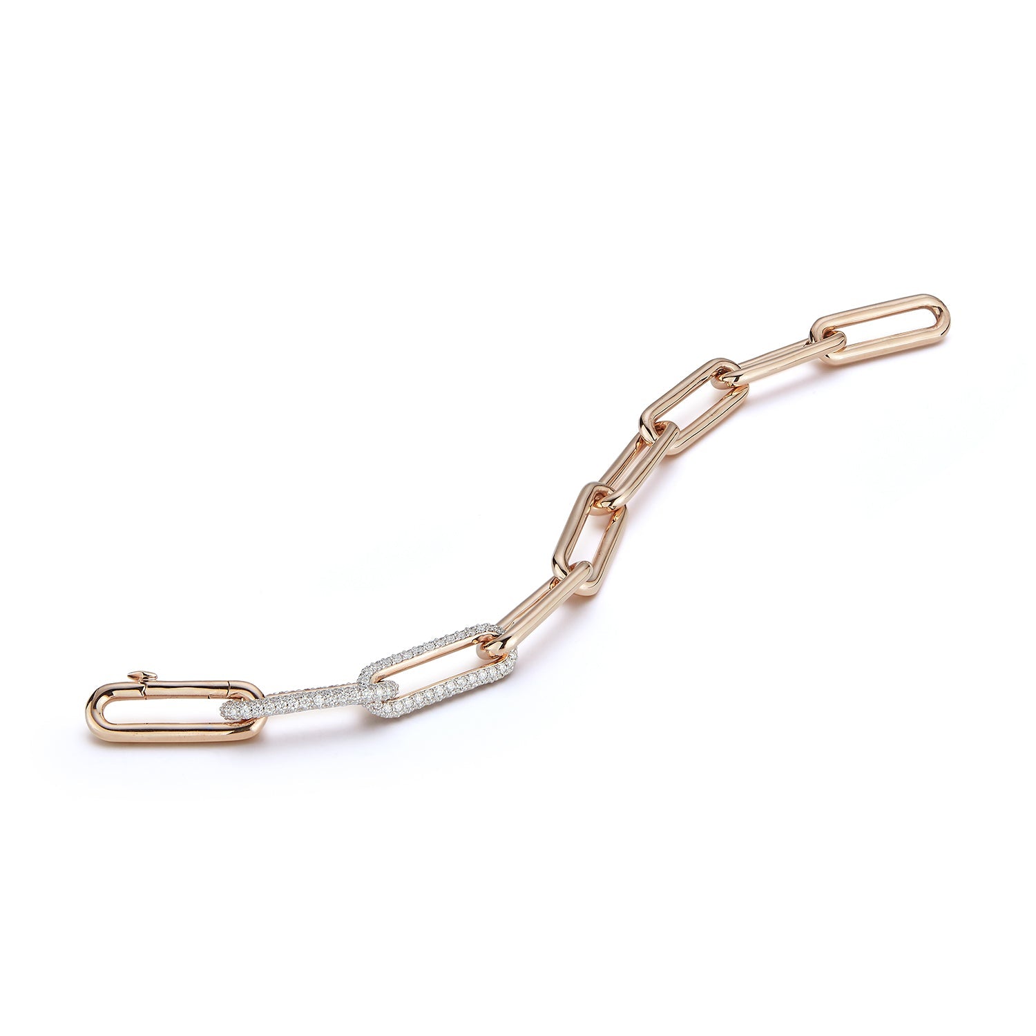 - elongated chain with white rhodium diamonds links